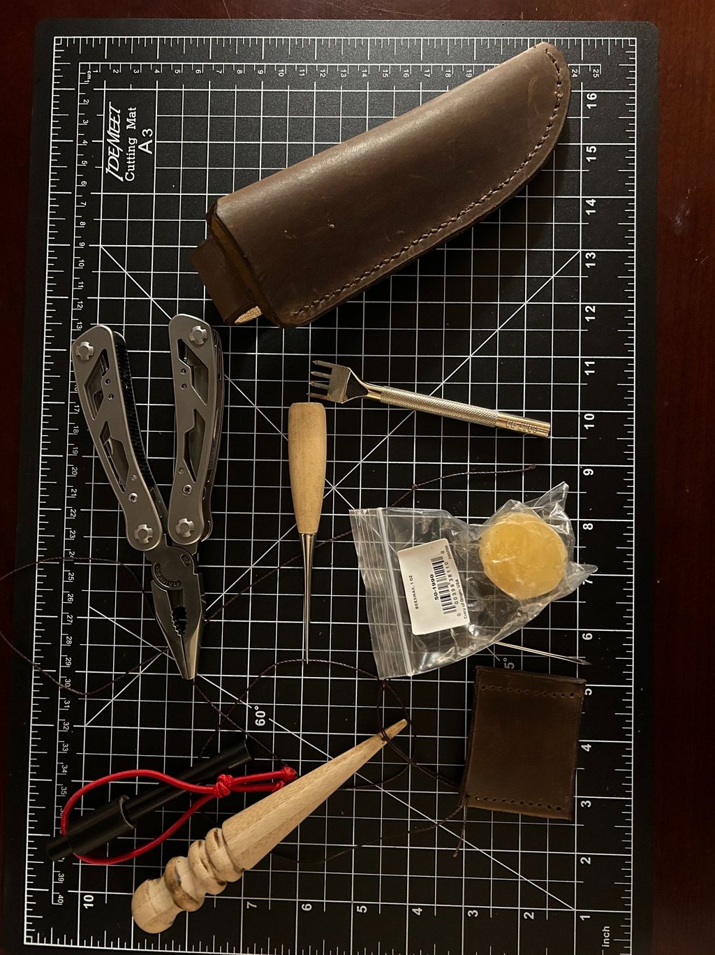 There is something about how leather feels, looks, and smells! It's known for it's durability and, it's nostalgia is undeniable. I had NO IDEA how many types, thicknesses, tanning methods, nor colors were available until I initiated this task. After hours of searching various supply outlets on the internet, I finally settled on a cattle leather that was described as 9-10 oz. (which turned out to be the perfect thickness for the size and weight of Ol' Smokey). I ended up liking a color that the manufacture described as "Bourbon Brown". I had to watch a multitude of videos to learn how to template, cut, sew, and treat the leather before I could even begin.
