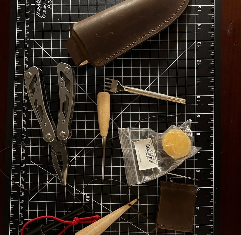 ...was the next item that I had to tackle in order to complete the "Project". I approached the task with the mentality that most Bushcraft knife sheaths that I have ever seen were constructed out of leather. I'd never really built anything substantial out of leather before but, I knew that a leather sheath was exactly what Ol' Smokey deserved.