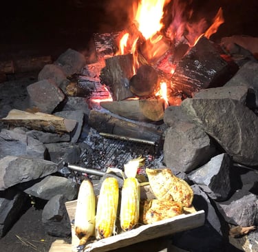 My groups time is usually initially spent setting up our "Cover" and "Sleep Systems" but, quickly evolves into engaging in traditional activities such as collecting natural materials from our surroundings and establishing a "Flint and Steel" fire, charring additional materials for the next fire, collecting water from a nearby source and, sharing stories about how we've spent our time since our last outing and, conversing about agreed upon "challenges" for this particular weekend.