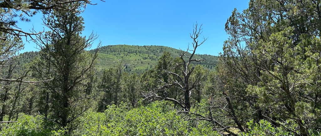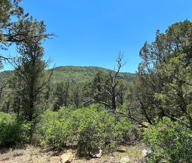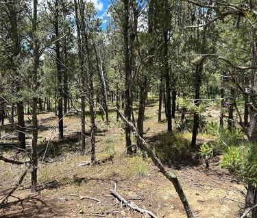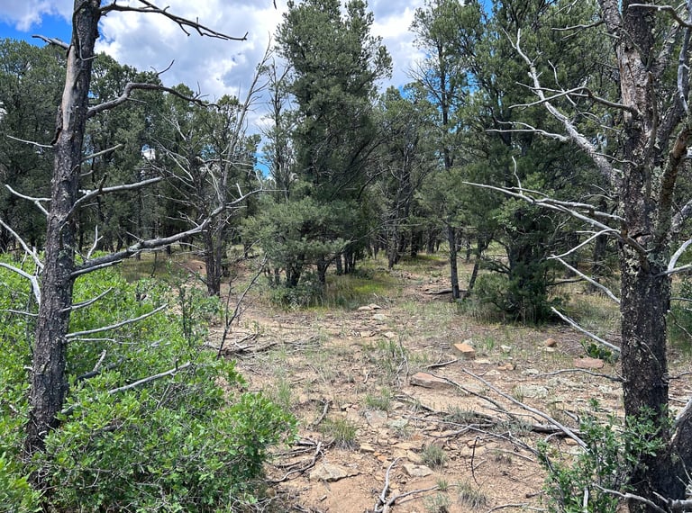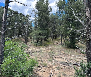 This photo was taken only approximately 100 yards from where the photo previously shown was taken. Here is an example of where we are afforded multiple assets and opportunities. There is plenty of natural materials available for building a shelter. There are even some Juniper trees to collect inner bark from for a Tinder Bundle, as well as some Pine trees that we could harvest "Fat Wood" from to help build our initial flame into a sustainable fire. It may be wise to construct our shelter under the canopy of a mature tree but, perhaps a Fire Lay would be better served if we were to place it in this opening where, we could use it as a "Passive Signal" for potential rescuers to locate us. There is even an abundance of green vegetation that we could place on top of our Fire Lay, to create a Smoke Plume as an "Active Signal"! (Please note the clouds in the background. We were pounded by a thunderstorm shortly after this photo was taken! It just goes to show you how quickly the weather can change.)