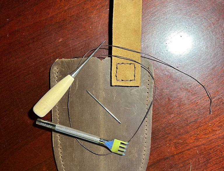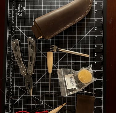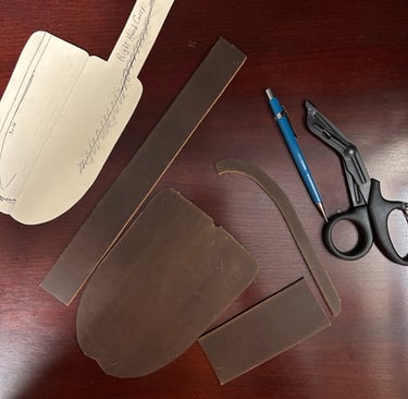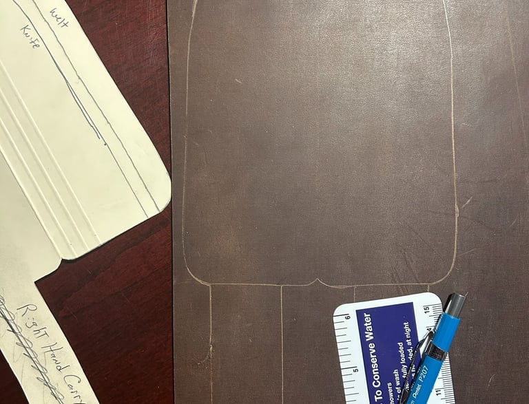 There is something about how leather feels, looks, and smells! It's known for it's durability and, it's nostalgia is undeniable. I had NO IDEA how many types, thicknesses, tanning methods, nor colors were available until I initiated this task. After hours of searching various supply outlets on the internet, I finally settled on a cattle leather that was described as 9-10 oz. (which turned out to be the perfect thickness for the size and weight of Ol' Smokey). I ended up liking a color that the manufacture described as "Bourbon Brown". I had to watch a multitude of videos to learn how to template, cut, sew, and treat the leather before I could even begin.