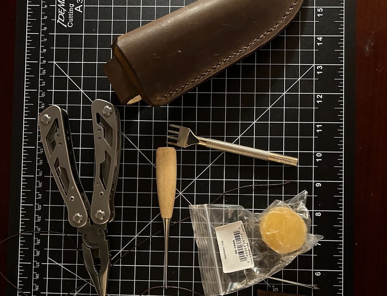 ...was the next item that I had to tackle in order to complete the "Project". I approached the task with the mentality that most Bushcraft knife sheaths that I have ever seen were constructed out of leather. I'd never really built anything substantial out of leather before but, I knew that a leather sheath was exactly what Ol' Smokey deserved.