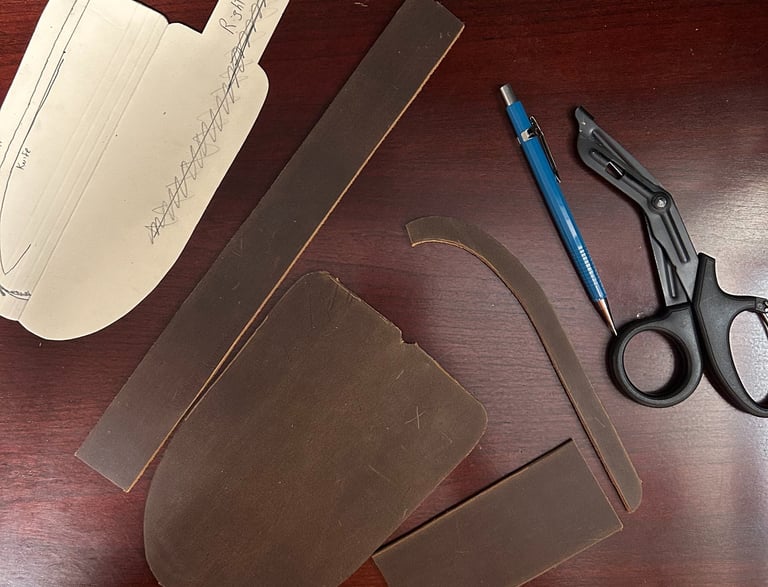 (3) Cut the individual pieces of leather out